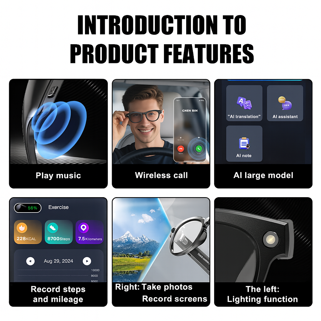 Experience smart living with VerboGlasses — stream music, take wireless calls, capture stunning photos, record your day, track fitness, and enjoy powerful AI translation and assistance. Sleek design meets cutting-edge technology — all in one stylish pair.